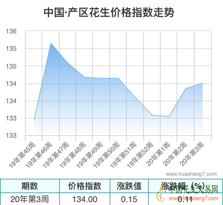 2020年第3周周定基指数为134.00,较2020年第2周上涨约0.11%,周环比指数为100.12,较2020年第2周下跌约-0.4%,周同比价格指数为127.96,较去年同期上涨约0.23%。