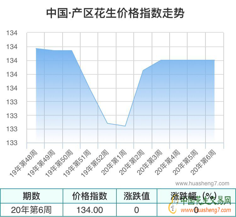 2020年第6周周定基指数为134.00,较2020年第5周无涨跌,周环比指数为100.00,较2020年第5周无涨跌,周同比价格指数为128.11,较去年同期上涨约0.11%。