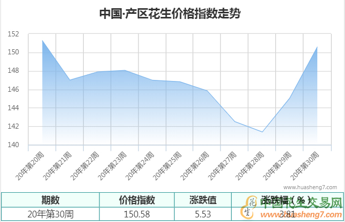 2020年第30周周定基指数为150.58点,较2020年第29周上涨3.81%,周环比指数为103.09点,较2020年第29周上涨3.67%,周同比价格指数为109.63点,较去年同期上涨3.45%。