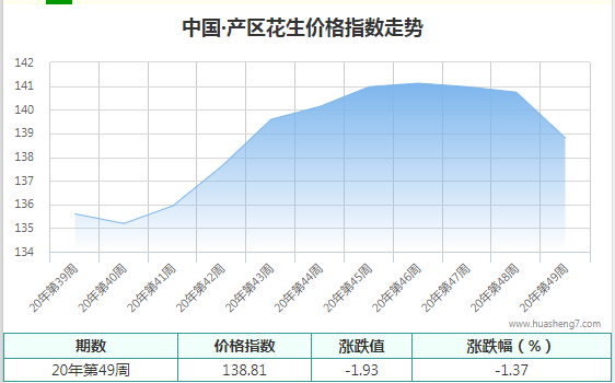 2020年第49周周定基指数为138.81点,较2020年第48周下跌1.37%;周环比指数为98.63点,较2020年第48周下跌1.21%;周同比价格指数为101.97点,较去年同期下跌1.34%。
